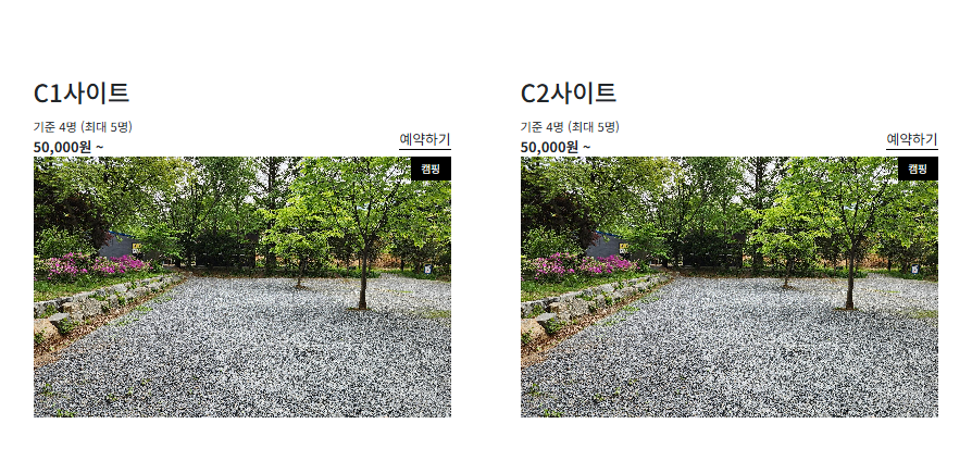 요금은 1박 기준으로 일반 사이트는 40,000 ~ 50,000원, 데크 사이트는 50,000 ~ 60,000원 수준입니다. 펜션이나 캠핑장의 경우 계절이나 성수기/비수기에 따라 요금이 차등 적용된다는 사실은 어디나 마찬가지입니다. 예약 사이트를 잘 살펴보시거나 사전에 문의해 보시는 게 가장 정확하고 안전하겠죠.