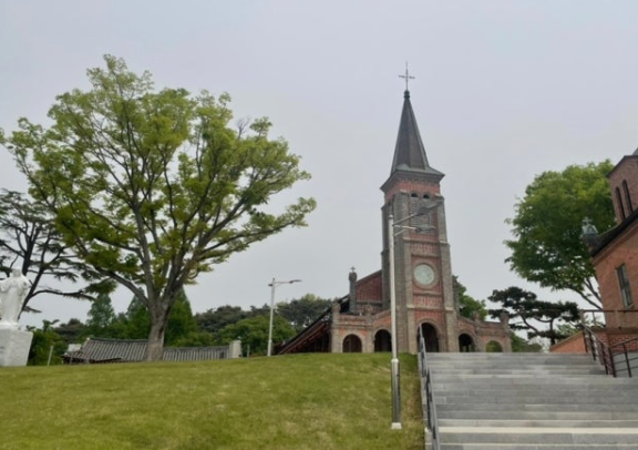 나바위성당은 익산 망성면에 있는 고풍스러운 성당으로 전통 한옥과 고딕 건축 양식이 조화를 이루는 독특한 건축미를 지닌 천주교 성당입니다. ‘나바위’라는 지명은 ‘나루터 바위’에서 유래한 말로 예로부터 백제와 고구려를 잇는 교통의 요지이자 금강을 따라 교역이 활발히 이루어지던 지역명인 것이죠. 전체적으로 한옥의 전통미와 서양식 성당 구조가 결합된 형태로 외관은 한옥 기와지붕을 하고 있으나 내부는 고풍스러운 고딕 양식의 아치와 스테인드글라스로 꾸며져 있어 이국적이면서도 한국적인 매력을 동시에 느낄 수 있습니다.