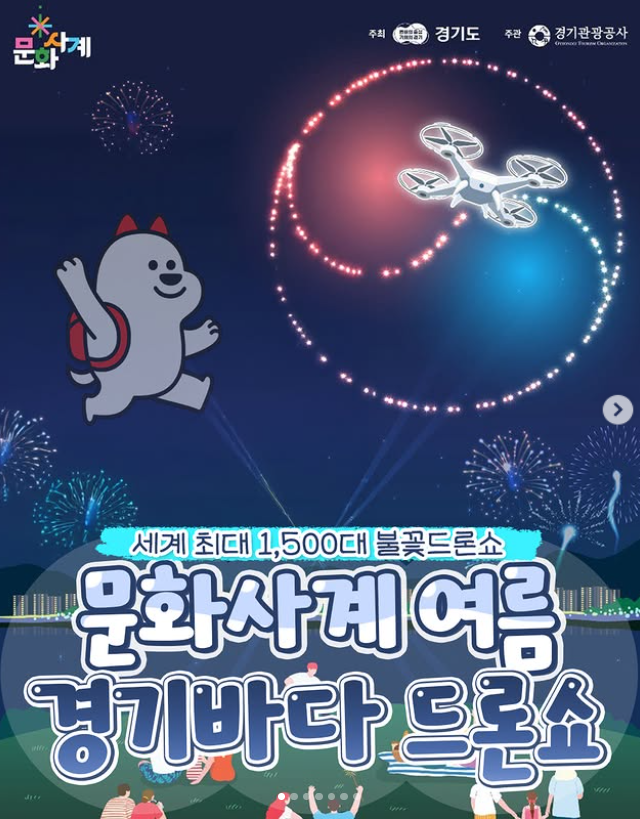경기도에 따르면 세계 최대 규모인 1,500대의 드론을 띄우고 동시에 불꽃쇼까지 겹쳐 진행하는 보기 드문 행사랍니다. 한여름 밤 호수와 바다 위에서 펼쳐질 초대형 야간 멀티미디어 퍼포먼스를 함께 즐겨보세요.